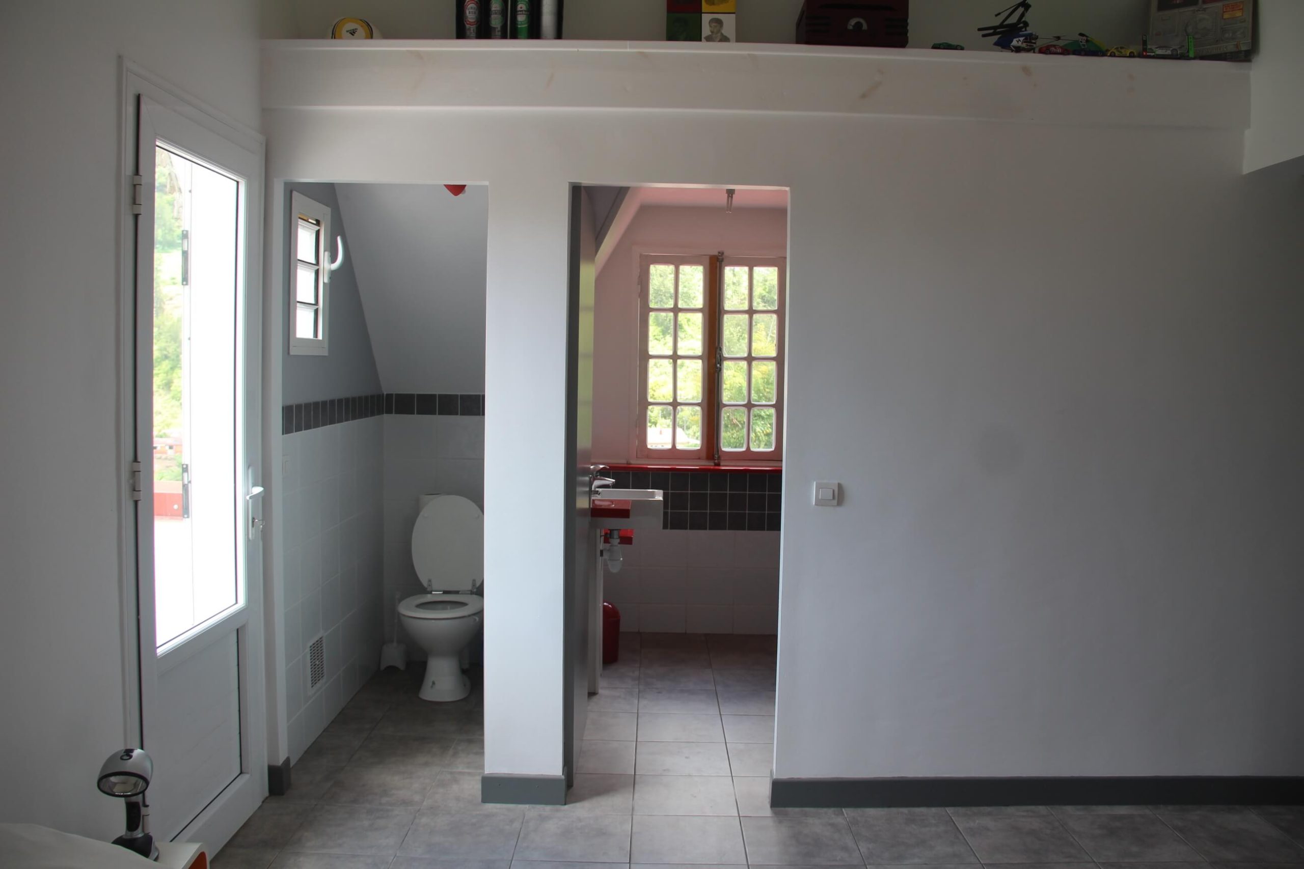 Studio à l’étage comprenant une cuisine de 7 m2, une chambre, une espace travail et un canapé sur une surface de 30 m2 ainsi que la terrasse de 12 m2.